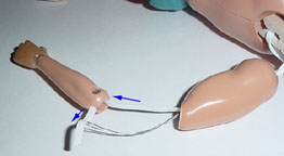 inserted through the the arm