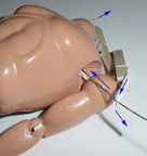 inserted through the the arm